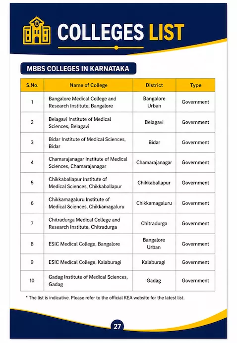 Understand Karnataka state eligibility, minority quotas, NRI quota, and All India eligibility conditions. - Complete MBBS & BDS College List in Karnataka